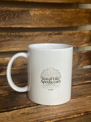 Sip your favorite blend in style with our Tea of Life Apothecary Mug. This crisp white mug features our Tea of Life logo on both sides, making it a perfect companion for your daily rituals. Durable, simple, and classic—it’s more than just a mug, it’s a reminder to slow down and nurture yourself with every cup.